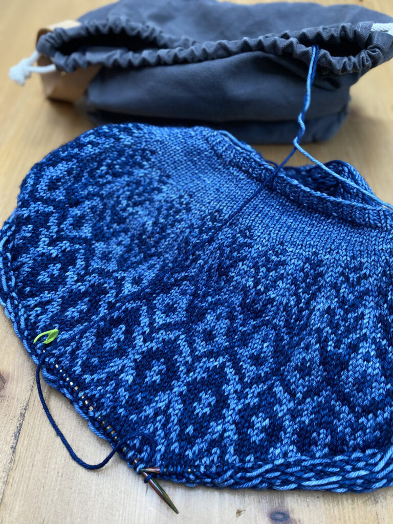 Goldwing (Blue) – Malabrigo Rios in Azul Profundo 150 MC x 5 and Denim 209 CC x 1