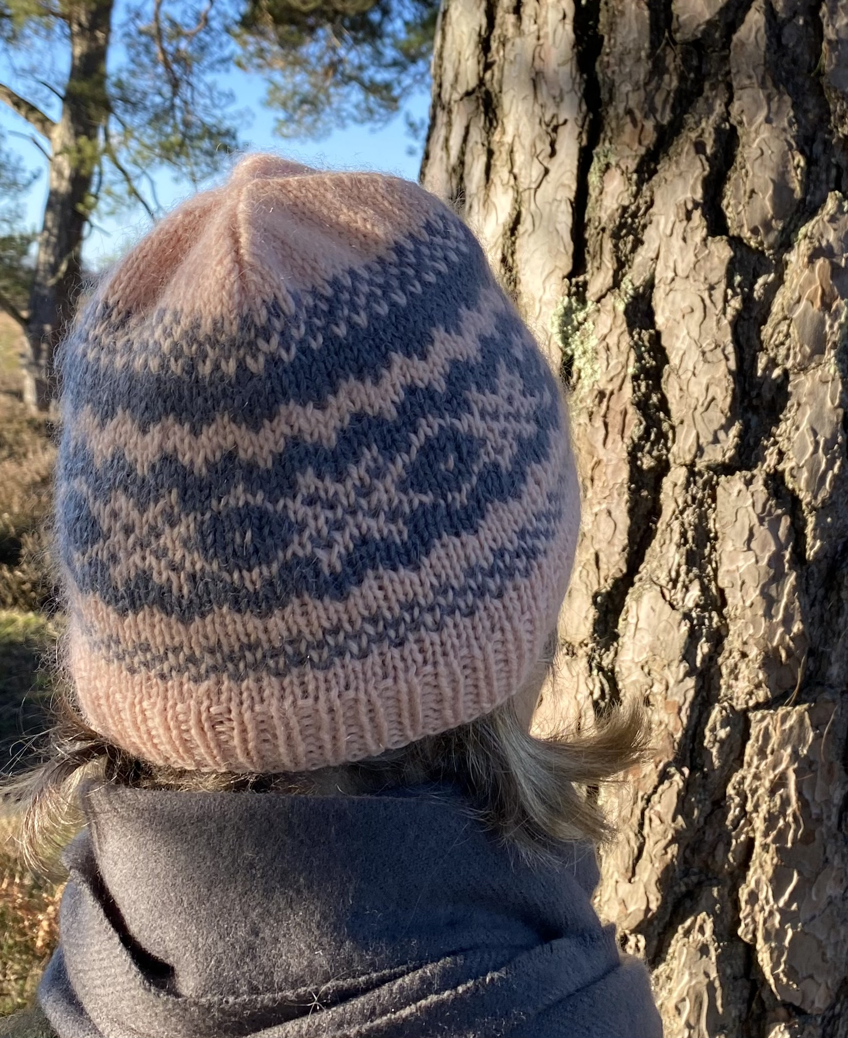 When knitting a hat, traditional Fair Isle is usually worked in the round on circular needles or on a set of double-pointed needles. This way the right-side of the knitting is always facing you, making it easier to see the pattern as you knit.